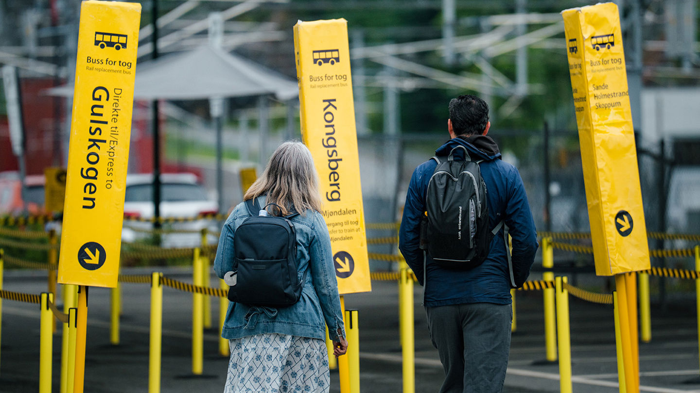 I påsken reiser færre med toget, og da benytter vi anledningen til å utføre nødvendig vedlikeholdsarbeid på jernbanen. Når togstrekninger stenges for arbeid, må passasjerene reise med buss.