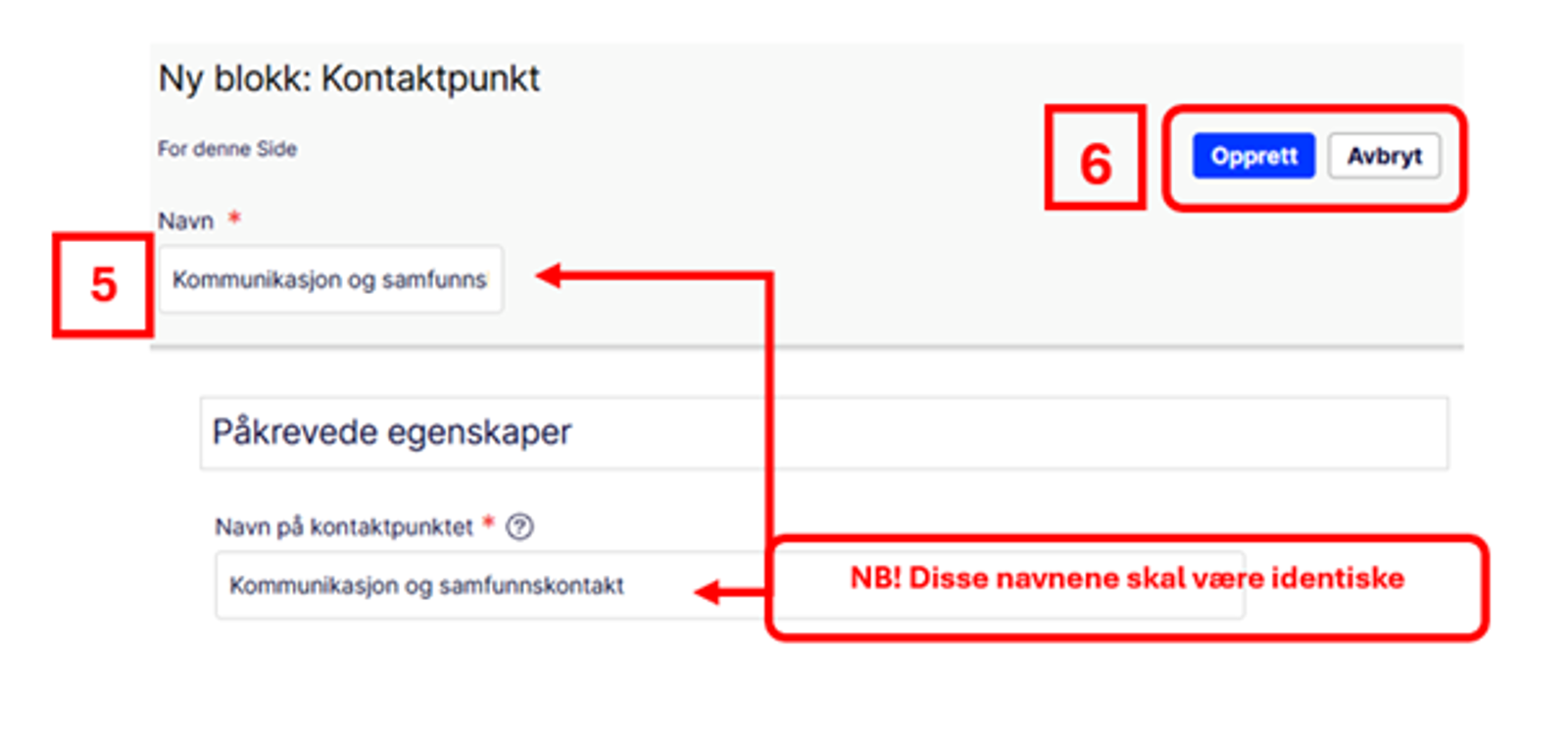 NB! Oppretter du blokken i "For denne side", vil blokken kun være tilgjengelig for den siden du jobber på, og kan ikke brukes andre steder.