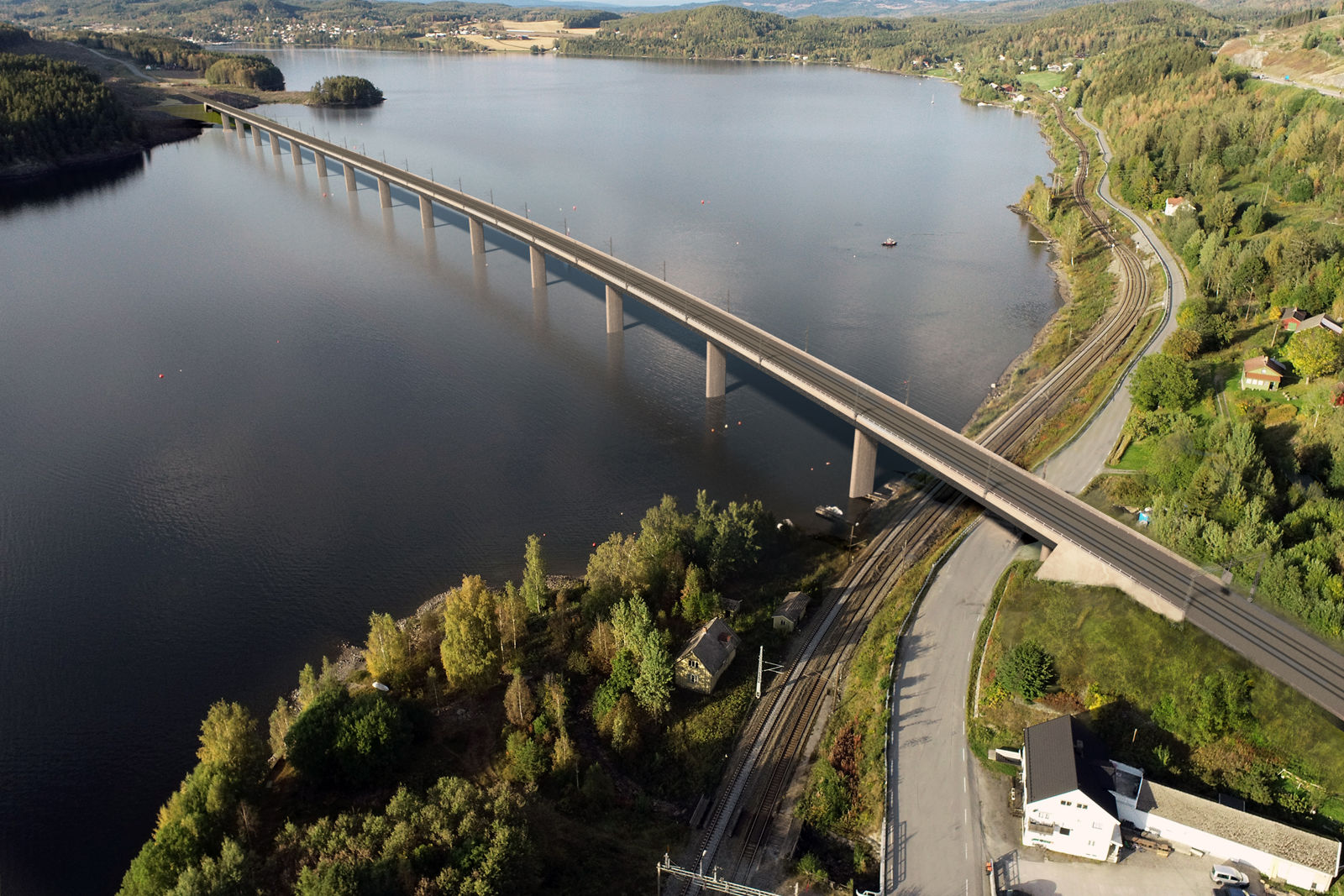 I mellomtiden vil vår entreprenør Implenia benytte sommeren til å rigge seg klar. Det skjer både på land og på vannet med flåter og annet utstyr de skal benytte mens de jobber med brufundamentene ute i Tangenvika.