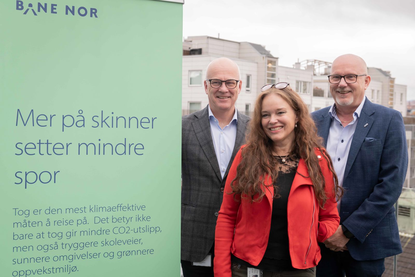 Konserndirektør i Bane NOR, Thor Gjermund Eriksen (t.v.), er sammen med prosjektleder for entreprisen, Marit Lembach-Beylegaard og daglig leder i Hæhre Entreprenør, Gudmund Roen godt fornøyd med miljøprofilen i entreprisen.