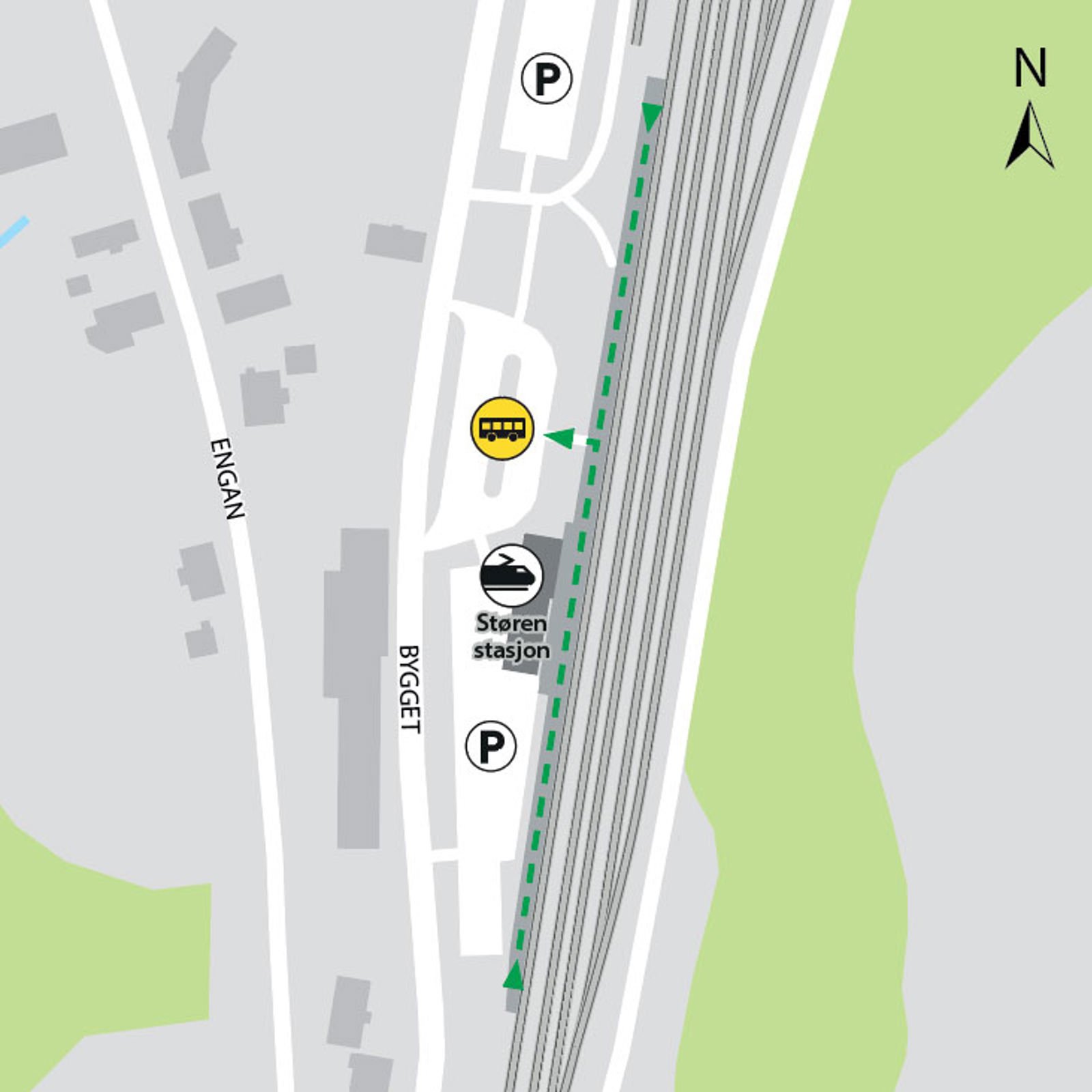 Støren stasjon i Midtre Gauldal ligger på Dovrebanen. Herfra kan du ta toget mot Trondheim, Oslo S, Røros, Hamar og Oppdal.